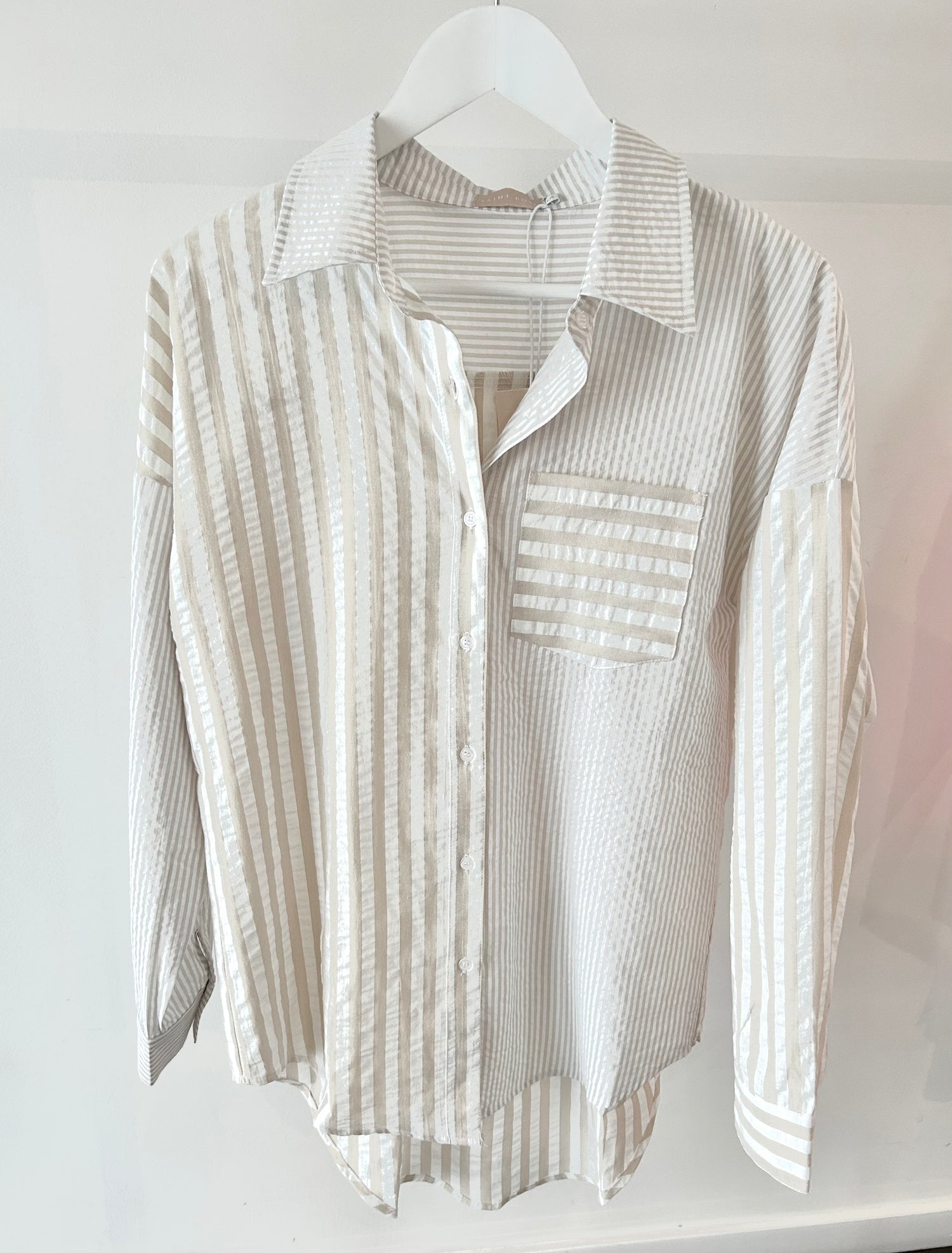 The Laguna shirt has a relaxed oversized fit. Button up shirt with a long sleeve that sits off the shoulder. A versatile piece for every wardrobe. Relaxed oversized fit, with a slightly longer curved back hem.