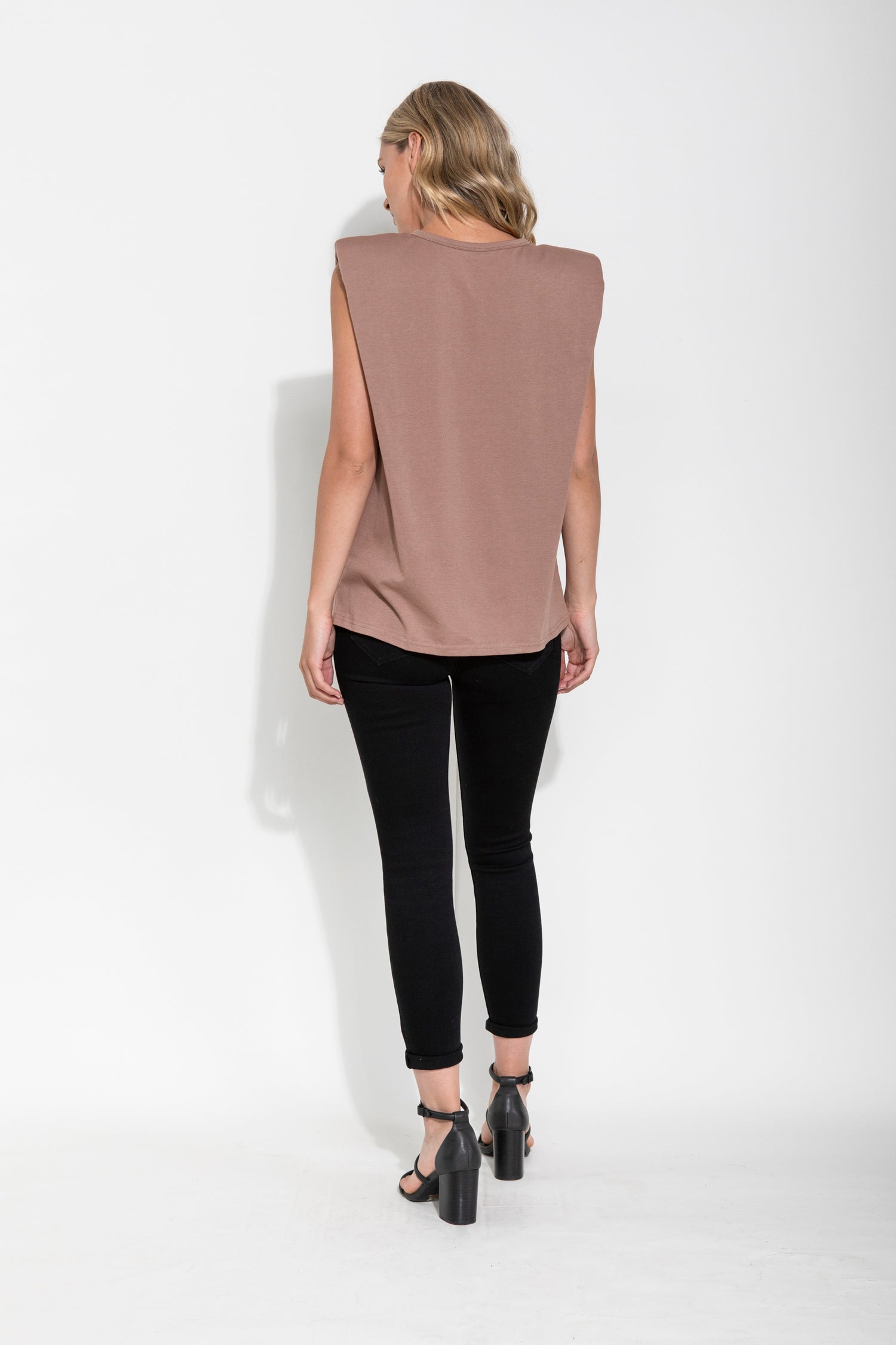 PADDED MUSCLE TANK TEE. ON TREND SHOULDER DETAIL. RELAXED CUT
